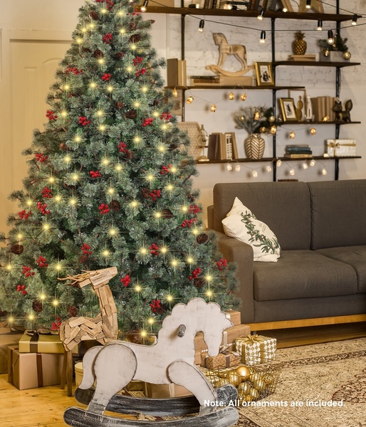 Better still, it comes with all the lovely ornaments included to make decorating the tree fun and hassle-free. All you need to do is just add those wonderful presents to complete the picturesque setting.