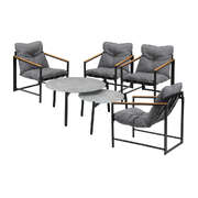 6PC Outdoor Patio Set Round Grey Marble Table Sets with Chairs