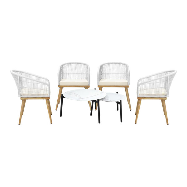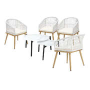 6PCS Outdoor Patio Set White Table Sets Polyester Chair Rope