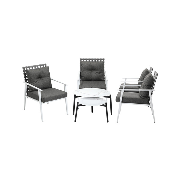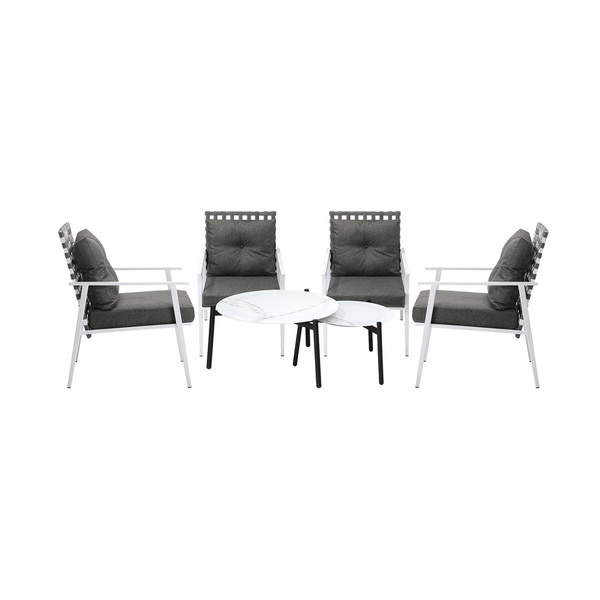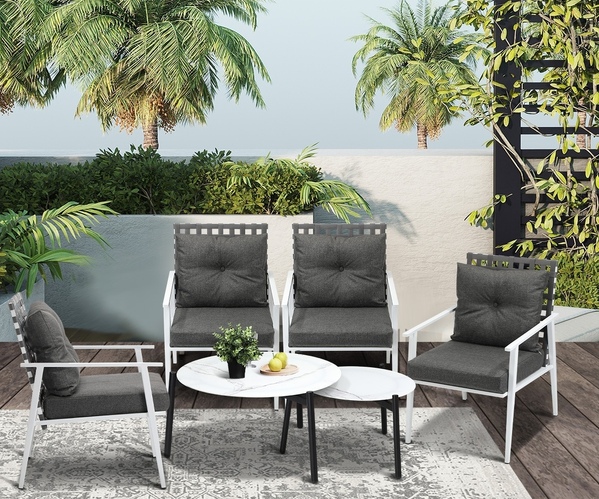 If you are looking for a classy and sophisticated outdoor set that adds a touch of marble-resque aesthetics to its setting, then this Outdoor Set is well within your radar of stylish furniture. None the ordinary and everything the exceptional.