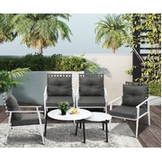 Equally enticing, the outdoor chairs will form a fine complement to the ensemble to create a very pleasing social focal point of relaxation and leisure. The chair match-ups with the coffee table are resplendent with style with every configuration that you desire.
