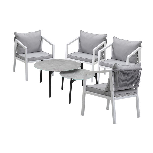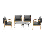6PCS Outdoor Patio Set Grey 70cm Coffee Table Set Natural Chairs