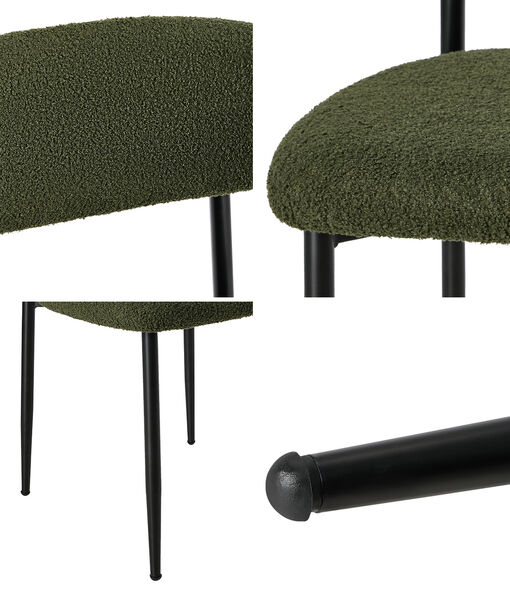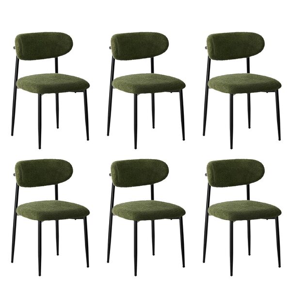 6x Dining Chairs Kitchen Chair Cafe Chair Boucle Black&Green