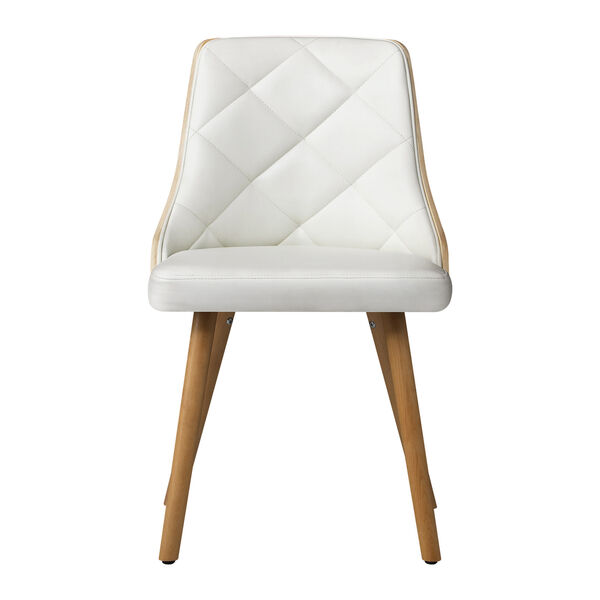 6x Wooden Dining Chairs with White Leather Padded Seats for Dining Room