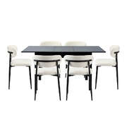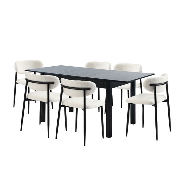 7 Piece Dining Table With Chairs Wooden Boucle Dining Set Black