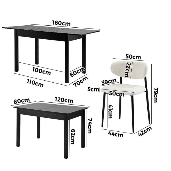 Table overall dimensions: 120cm-160cm(L) x 80cm(W) x 75cm(H)