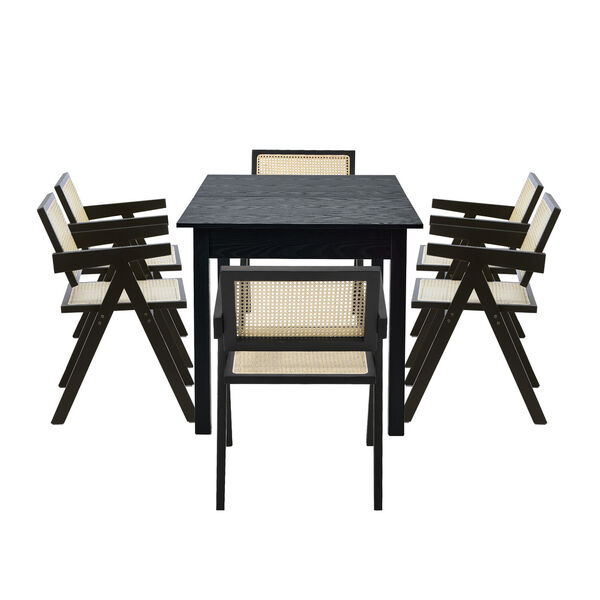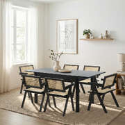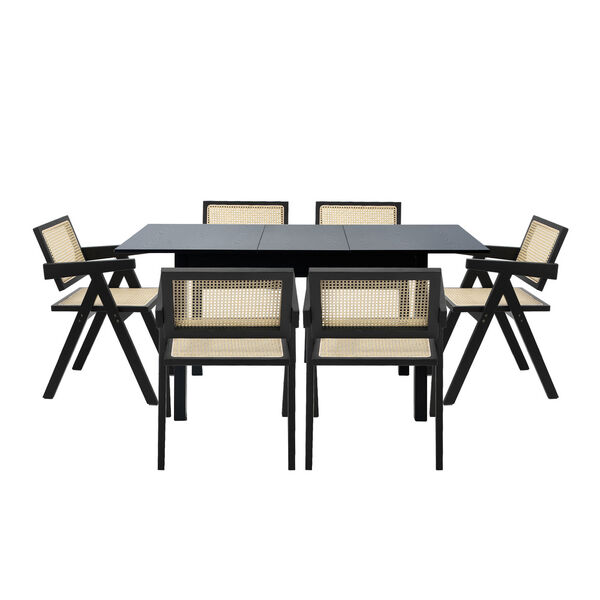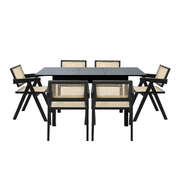 7 Piece Dining Table With Chairs Wooden Rattan Dining Set Black