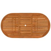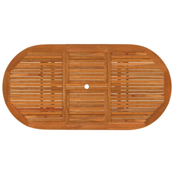 This wooden garden dining set has a rustic, timeless design and will be a great choice for dining in the garden or on the patio. Solid eucalyptus wood: Solid eucalyptus wood is a beautiful natural material. Eucalyptus wood is extremely dense and water repellent. The material is well-known for its rich reddish-brown colour.Extendable dining table: Thanks to its special design, this wooden table can be extended when extra space is required.Practical umbrella hole: This outdoor table features an umbrella hole to provide an appropriate spot for your umbrella to help you avoid sunlight and rain.Reclining wooden chairs: The garden armchairs feature curved seats and backrests. Additionally, the backrest can be adjusted in 5 positions, so you can always find a comfortable position.Foldable design: These dining chairs can be folded to save space when not in use. You can easily carry them with you anywhere on your outdoor trips. Note:In order to extend the life of your outdoor furniture, we recommend you to clean it regularly and do not leave it outdoors without protection unnecessarily. Clean: Use a mild soap solution. Storing: If possible, store in a cool, dry place indoors. If the product is stored outdoors, protect it with a waterproof cover. Wipe and dry the excess water or snow from flat surfaces after a rain or snowfall. Allow sufficient air circulation to avoid moisture-related damage.