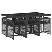 7 Piece Garden Dining Set with Cushions Black Poly Rattan