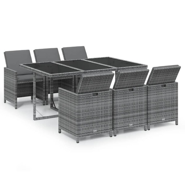 7 Piece Garden Dining Set with Cushions Poly Rattan Grey