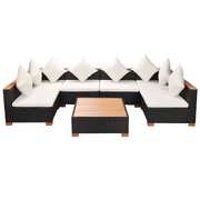 7 Piece Garden Lounge Set with Cushions Poly Rattan Black