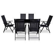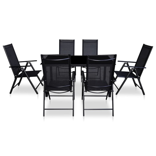 7 Piece Outdoor Dining Set with Folding Chairs Aluminium Black