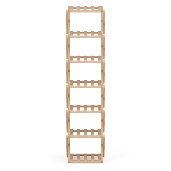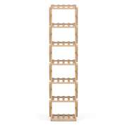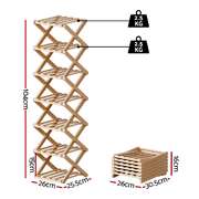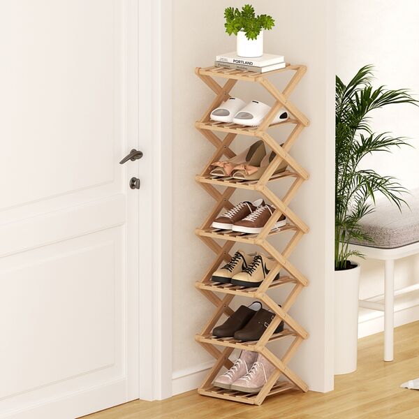 Maximise your space with this elegant shoe rack! Crafted from sustainable bamboo, this 7-tier organiser provides smart shoe storage for entryways, laundries or garages. The foldable design features a stable X-frame structure, vented panels for airflow, and smooth rounded corners for safety. With no assembly required, it offers instant organisation - each shelf holds 2.5KG. Perfect for rental homes! Compact dimensions: 23.5x25x104cm. Pine finish. 1 package.