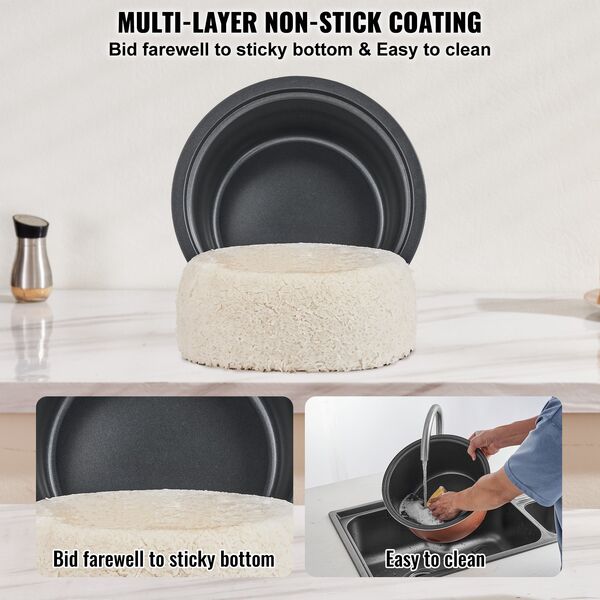 The non-stick inner pot and streamlined design make cleaning effortless. The non-stick surface prevents rice from sticking together, ensuring delicious and fluffy grains every time.