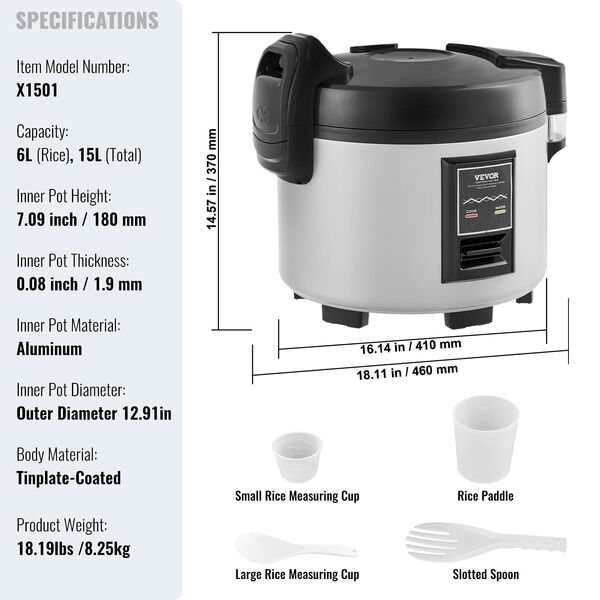 With a total capacity of 15 liters and the ability to cook 6 liters of rice at once (equivalent to 70 cups of rice), it's ideal for meeting the needs of 60-70 people. Whether for large family gatherings, parties, or commercial settings, this rice cooker can serve you well.