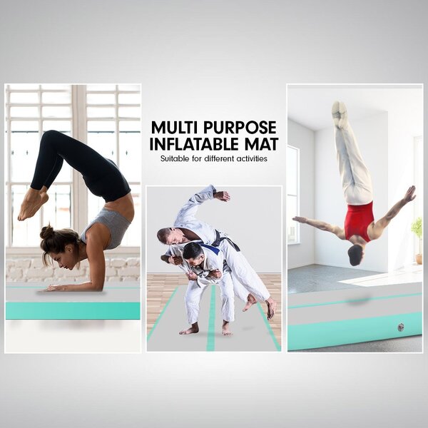 7m x 1m Air Track Inflatable Gymnastics Mat Tumbling - Grey Green
