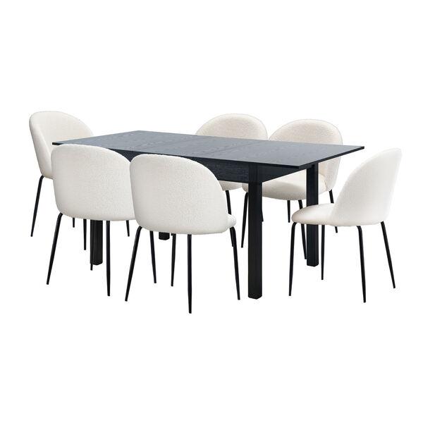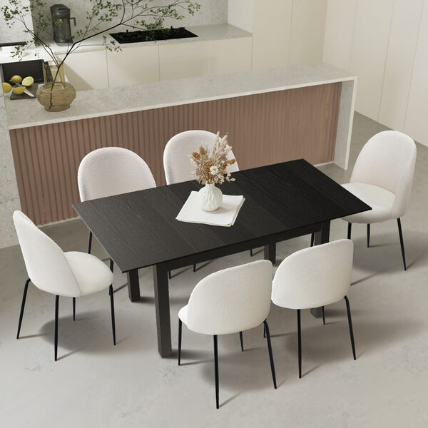7PC Extendable Dining Table Set with Chairs Modern Black & White
