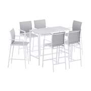 7PCS Outdoor Bar Set Stools Dining Chairs Table Patio Steel Bistro Set White