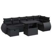 8 Piece Garden Sofa Set with Cushions Black - Poly Rattan - Stylish Outdoor