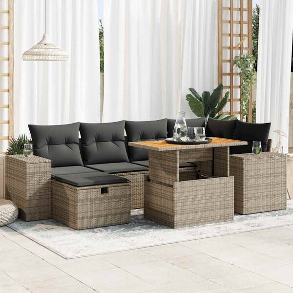 8 Piece Garden Sofa Set with Cushions Poly Rattan Acacia - Outdoor Comfort