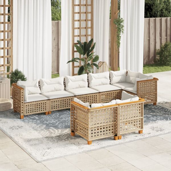 - Material: PE rattan, powder-coated steel, solid acacia wood with a natural oil finish