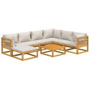 Grey Garden Octet: 8-Piece Solid Wood Lounge Ensemble with Light Cushions