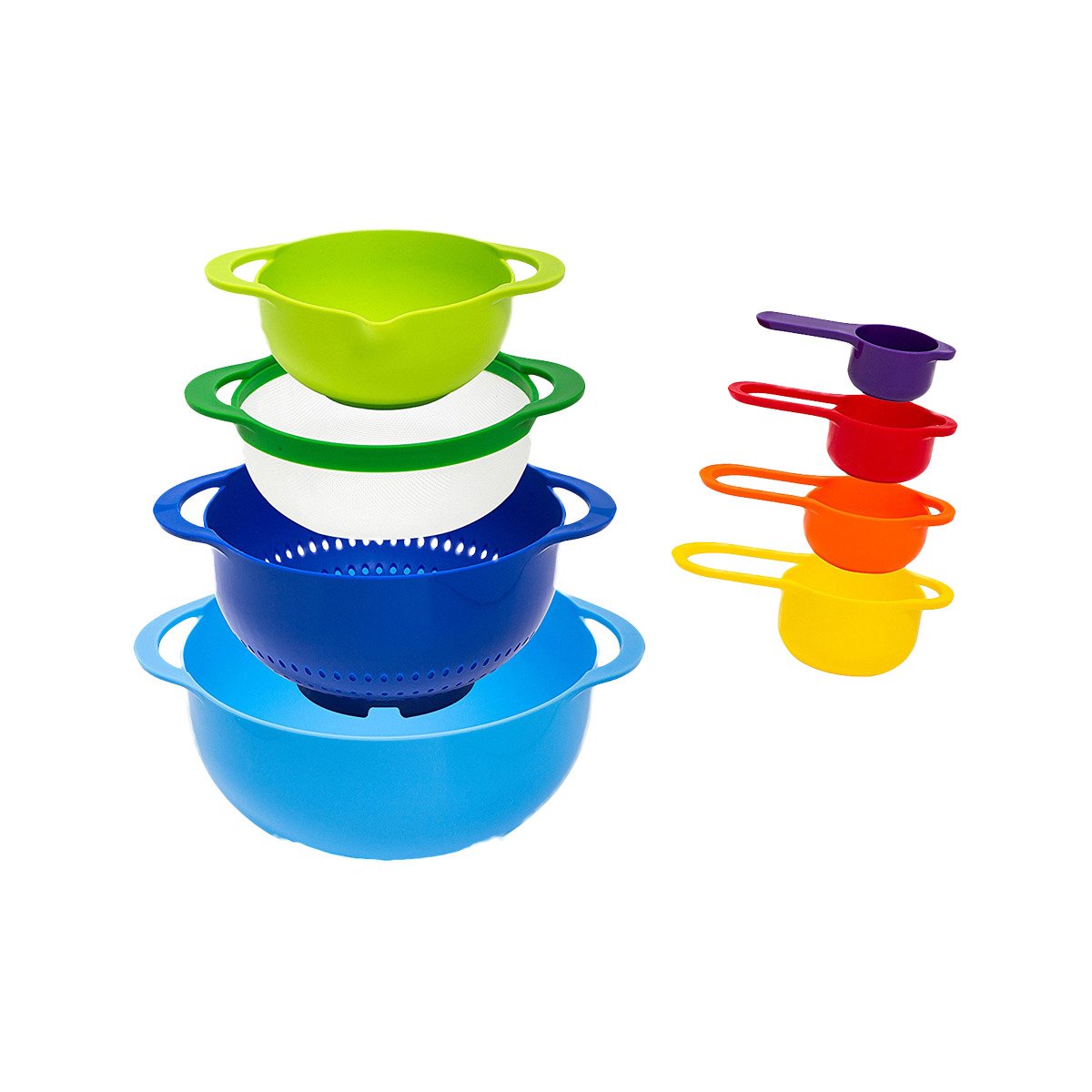 8 Piece Nested Colorful Kichen Kit Includes Measuring Cups Bowls & Spoons