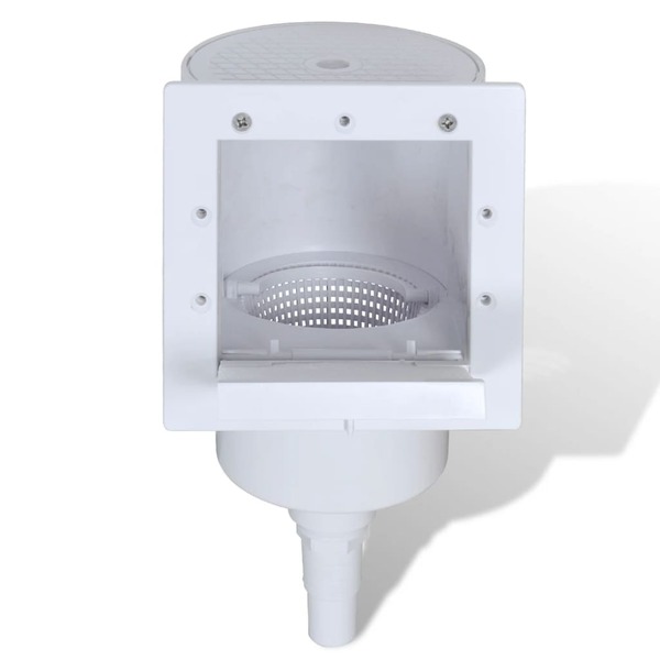This durable skimmer is made of heavy-duty ABS. The contoured body, combined with the weir and a basket with a dimension of 15.8 x 7.6 cm), provides superior skimming action that removes debris more efficiently and completely. The set includes 1 skimmer, 1 inlet nozzle, 1 skimmer weir, 1 skimmer lid, 1 skimmer bottom plate, 1 basket, 1 hose connection, 1 gasket and other mounting accessories.