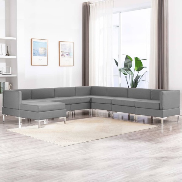 8 Piece Sofa Set Fabric Light Grey