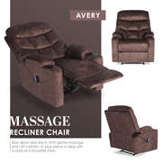8-Point Electric Massage Recliner Chair - Leathaire Lounge Sofa Armchair AVERY - Brown