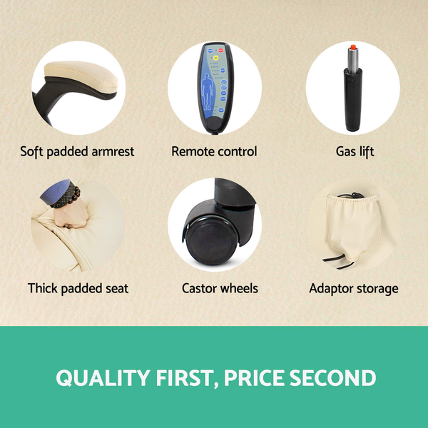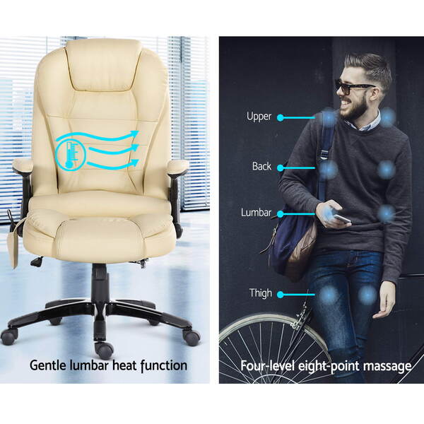 8 Point PU Leather Reclining Massage Chair - Beige