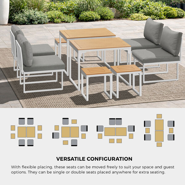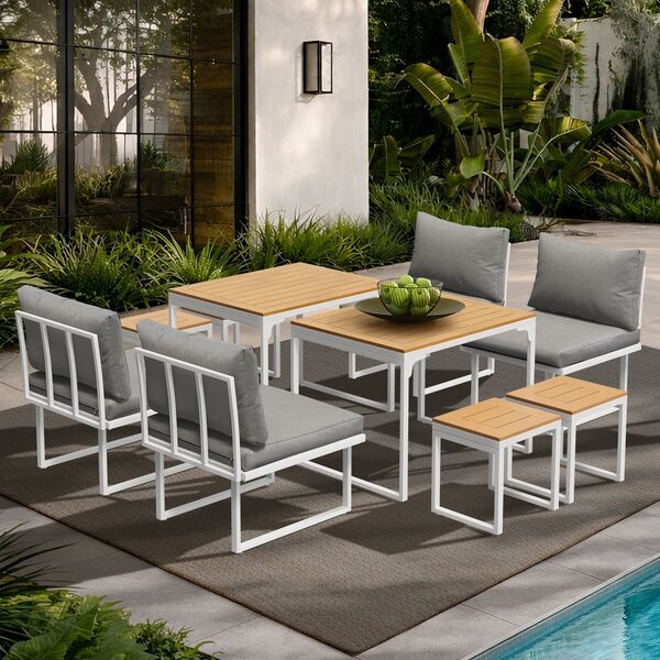 Indulge in the outdoors in fine style with the Outdoor Sofa Dining Set that has all the elements of comfort, practicality and durability that you have come to expect from exceptional furniture. And with a flexible configuration, our outdoor set is highly versatile and flexible in use. Nothing is confined to one setting shape or space.