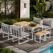 8 Seater Outdoor Dining Set Sofa Lounge Patio Ottoman White