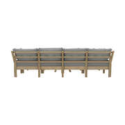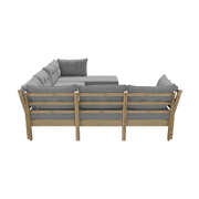 With a 8-piece sofa set configuration comprising a 6-seater sofa set, one ottoman and a matching coffee table to suit your requirements, our outdoor sofa set is highly versatile and flexible in use. Apartment balcony or house patio, the outdoor sofa set simply makes its presence felt and enjoyed in more ways than one. Every piece of the outdoor sofa set is made with exacting standards. Starting with the strong wooden framework for the seats that enable heavy-duty usage and a matching coffee table that provides ample space for all your entertaining and relaxation paraphernalia. The attention to details is meticulous throughout with no hard edges to be felt anywhere. Not to be outdone, the sofa cushions are equally enticing with rich form padding for long-lasting comfort and enveloped in removable and washable covers for hassle-free cleaning and washing.