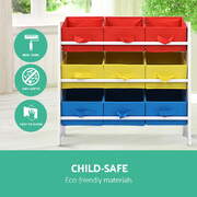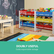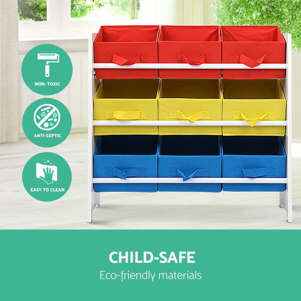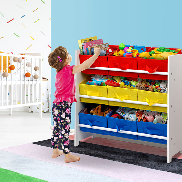 3-Tier 9 Bins Kids Toy Box Organiser Storage Rack Cabinet Wooden Bookcase