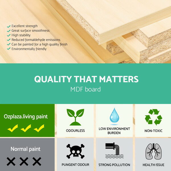 Comprising nine colourful non-woven fabric bins, the Toy Box offers ample storage space with vibrant hues to brighten up your child’s room. The fabric bins are removable and washable to maintain good hygiene with its continued use. All the bins are neatly stacked within a solid and child-safe MDF frame that is finished with non-toxic NC paint. Not least, the sturdy frame also features safe rounded edges to meet Australian safety standards.