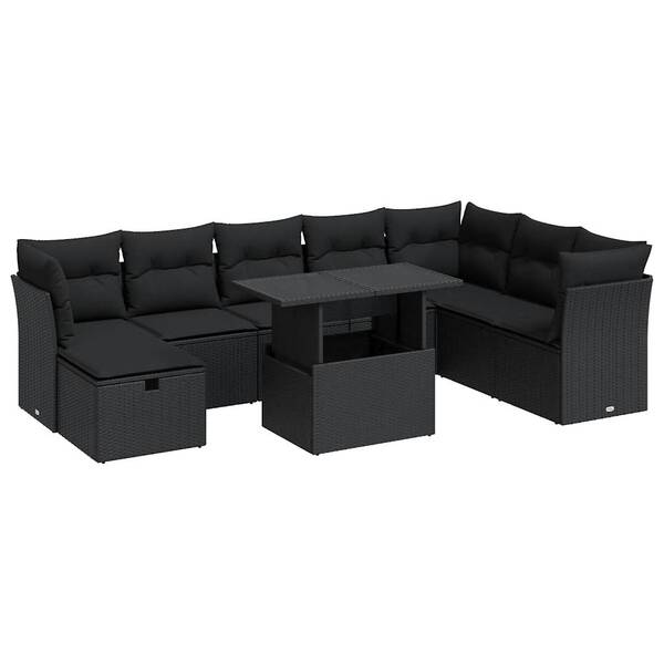 9 Piece Garden Sofa Set with Cushions Black Poly Rattan - Versatile and Stylish