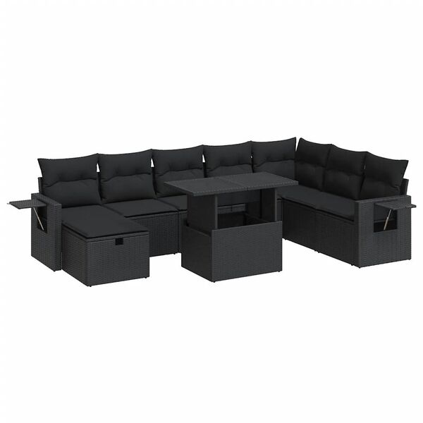 9 - Piece Garden Sofa Set with Cushions Black Poly Rattan