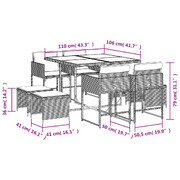 This garden dining set is a great choice for al fresco dining or just relaxing in the garden, backyard, or on the patio. Durable material: PE rattan, also known as poly rattan, is a strong, low-maintenance synthetic material that looks like natural rattan. It's lightweight, easy to clean, and commonly used for outdoor furniture due to its durability and weather-resistant properties.Compact storage: These chairs have a flap backrest that can be folded down, making it easy to store them under the table. When folded, they neatly fit under the table, forming a space-saving cube shape. Additionally, the stools can also be stored under the chairs, further maximising space efficiency.Comfortable seat experience: This outdoor furniture, complete with thickly padded cushions, offers a comfortable seating experience.Removable and washable cover: These seat cushions feature removable covers for easy washing and maintenance. The cushion covers have a flap at the back for easy attachment to the backrests.Glass tabletop: The outdoor table's top is made from strong and durable tempered glass, making it easy to clean with a damp cloth and adding a touch of elegance to your outdoor space. Good to know: To make sure your outdoor furniture stays beautiful, we recommend protecting it with a waterproof cover.