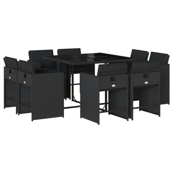 9-Piece Black Poly Rattan Garden Dining Set with Cushions for Stylish Outdoor