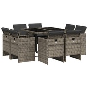 9 Piece Garden Dining Set with Cushions Grey - Poly Rattan