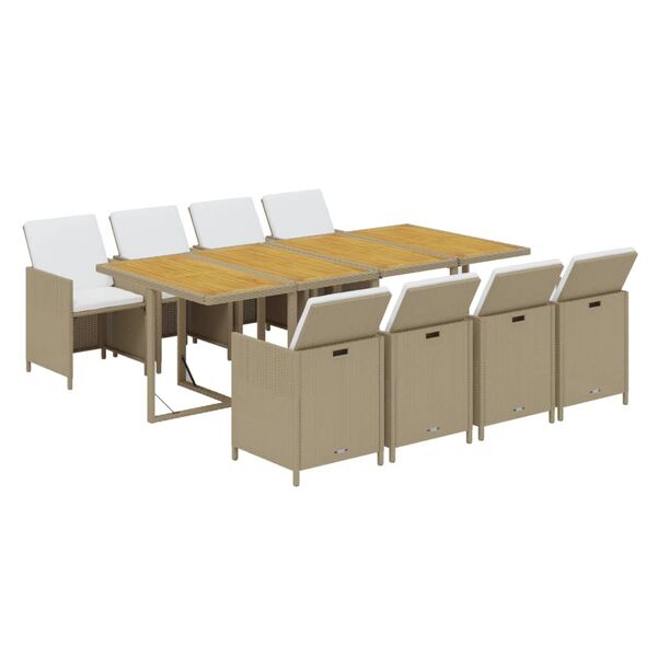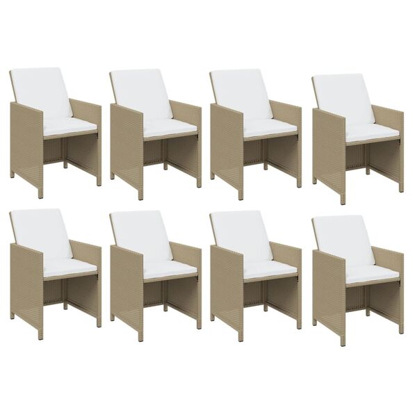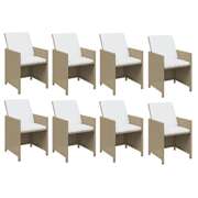 9 Piece Garden Dining Set with Cushions Poly Rattan Beige
