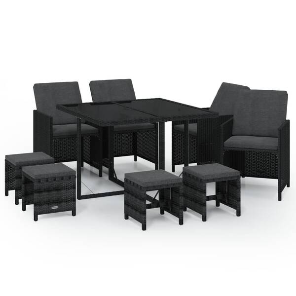 9 Piece Garden Dining Set with Cushions Poly Rattan Black