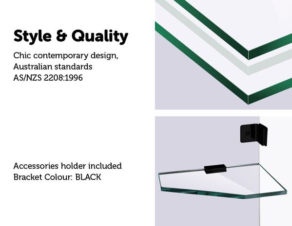 This single-panel screen is crafted from a 10mm-thick toughened safety glass. In addition to its crystal clarity, this glass is specifically designed to ensure absolute safety in the bathroom, meeting all applicable Australian Standards. Three sturdy clips — one for the floor, two for the wall — are included for a straightforward, hassle-free installation. This panel measures 900mm wide by 2100mm high.