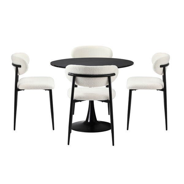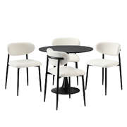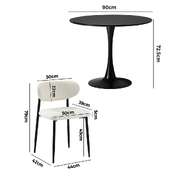 90cm Round Dining Table with 4x Dining Chairs Boucle Black&White