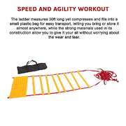 The ladder is solidly constructed and designed for optimum results. This handy versatile device is ideal for everyday use. It is easy to assemble for your workout and just as easy to store away for the next one. The 30 long ladder quickly collapses into a compact package and easily slips into its plastic bag which requires only minimal storage space.