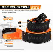 Solid Snatch Strap: These Polyester snatch straps, which measure 8ft and 20ft, have a breaking strength of 32,000 lbs, and flat shape makes wrapping easier.