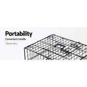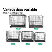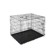 Featuring a foldable design with triple access doors, this dog cage offers maximum convenience and is extremely safe for containing your pets. It's metal constructed with a powder coated finish enhancing durability and is also rust resistant. Easy to setup, store, transport and clean. Great for securely keeping your pets contained, a must have for every pet owner.