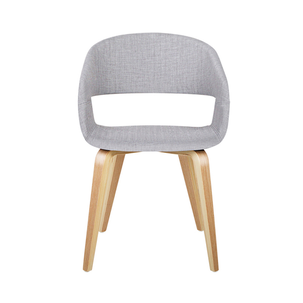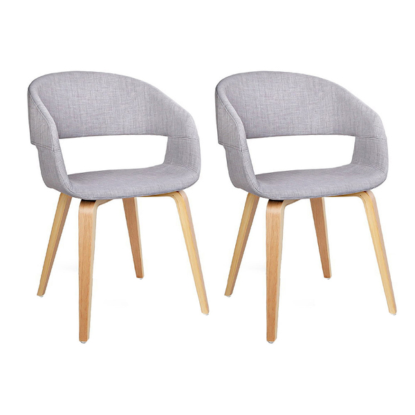 Set of 2 Timber Wood and Fabric Dining Chairs - Light Grey