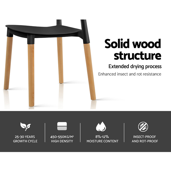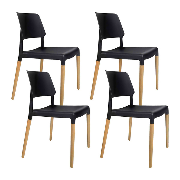 Set of 4 Wooden Stackable Dining Chairs - Black